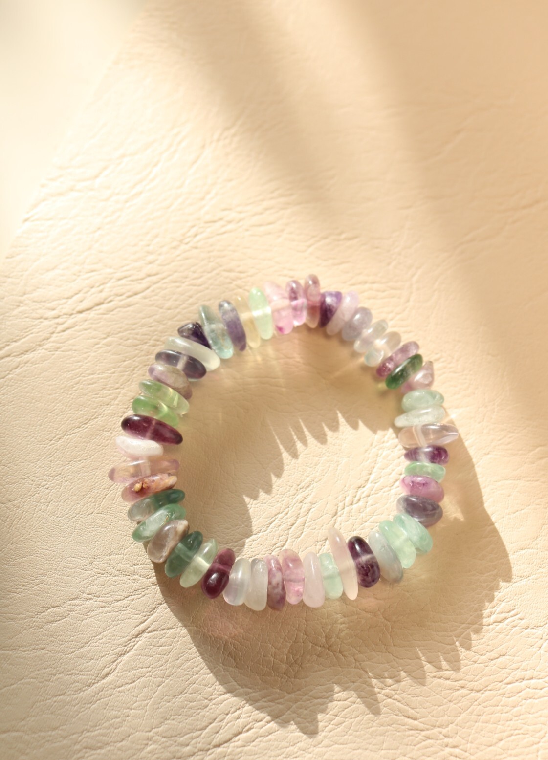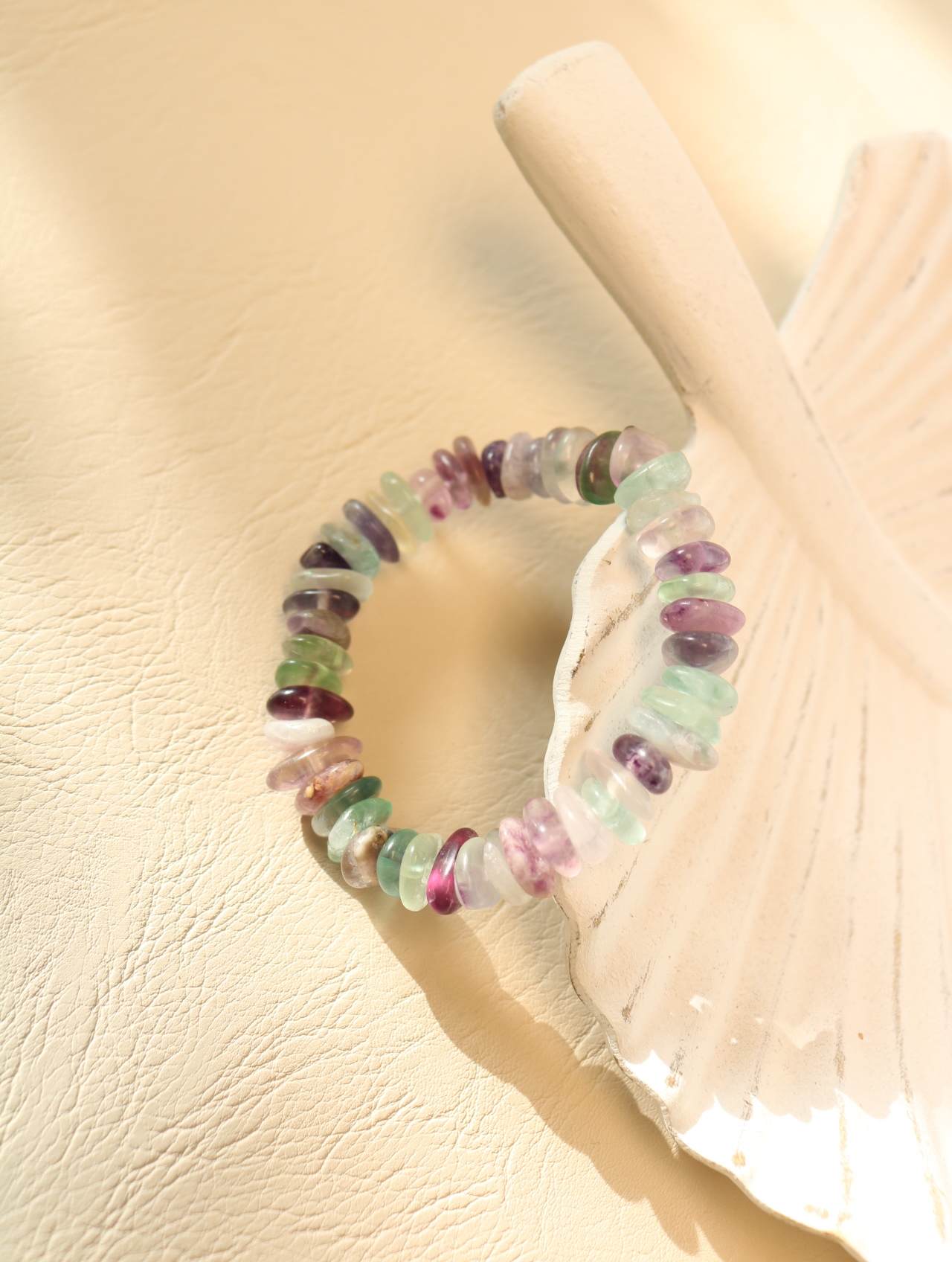 Нежный браслет из натурального флюорита в форме гладких «лепестков» на эластичной основе.