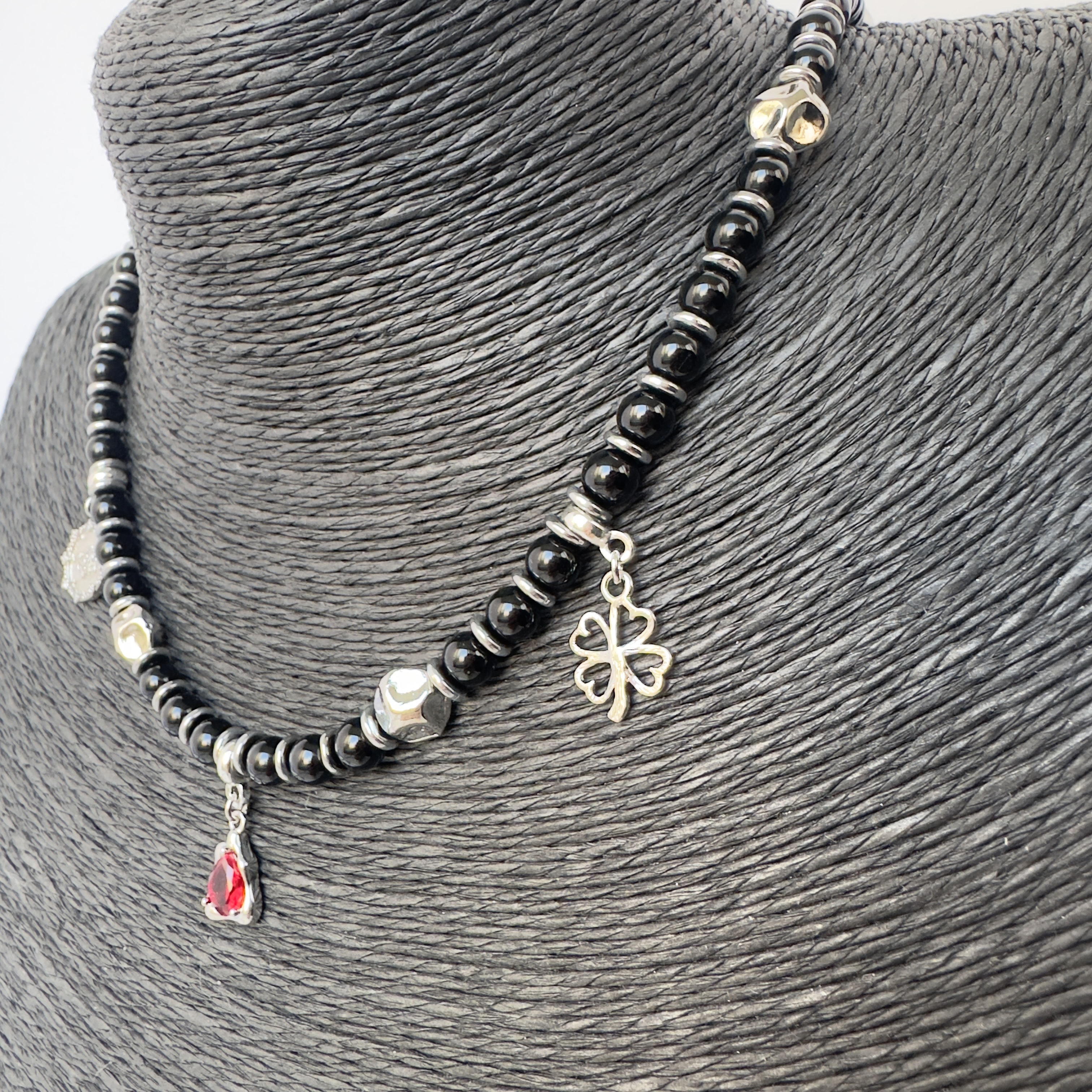 Считается, что он защищает владельца от тревог и дарит устойчивость в переменах. Агат помогает сохранять спокойствие и притягивает благоприятные обстоятельства.Гематит — камень уверенности и ясности.