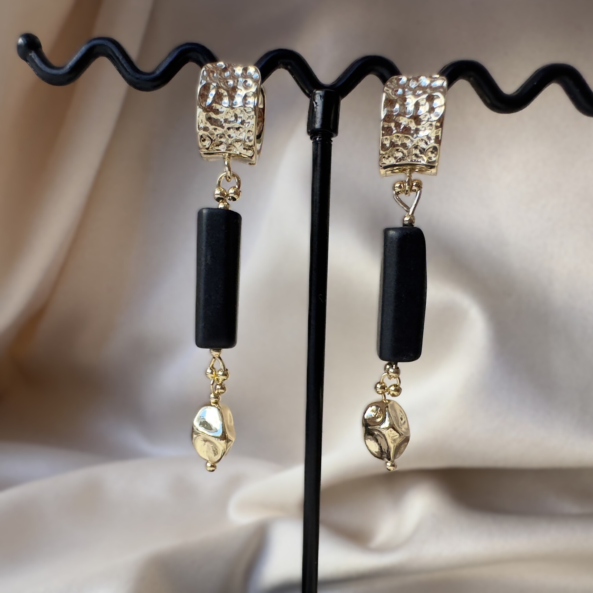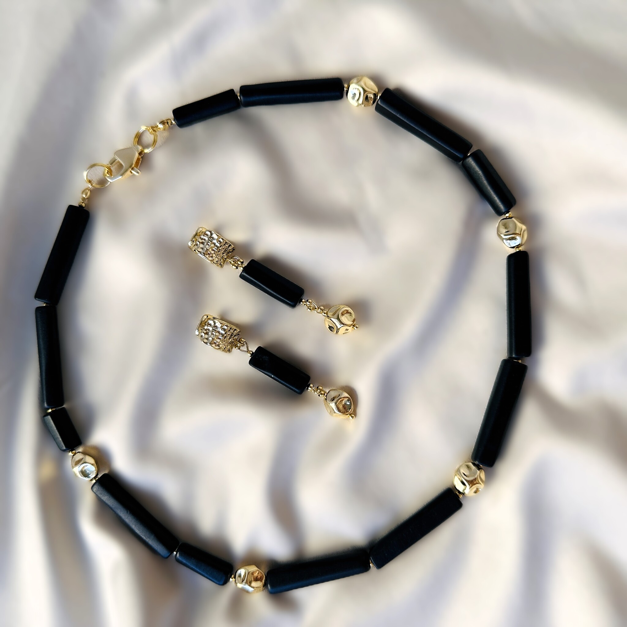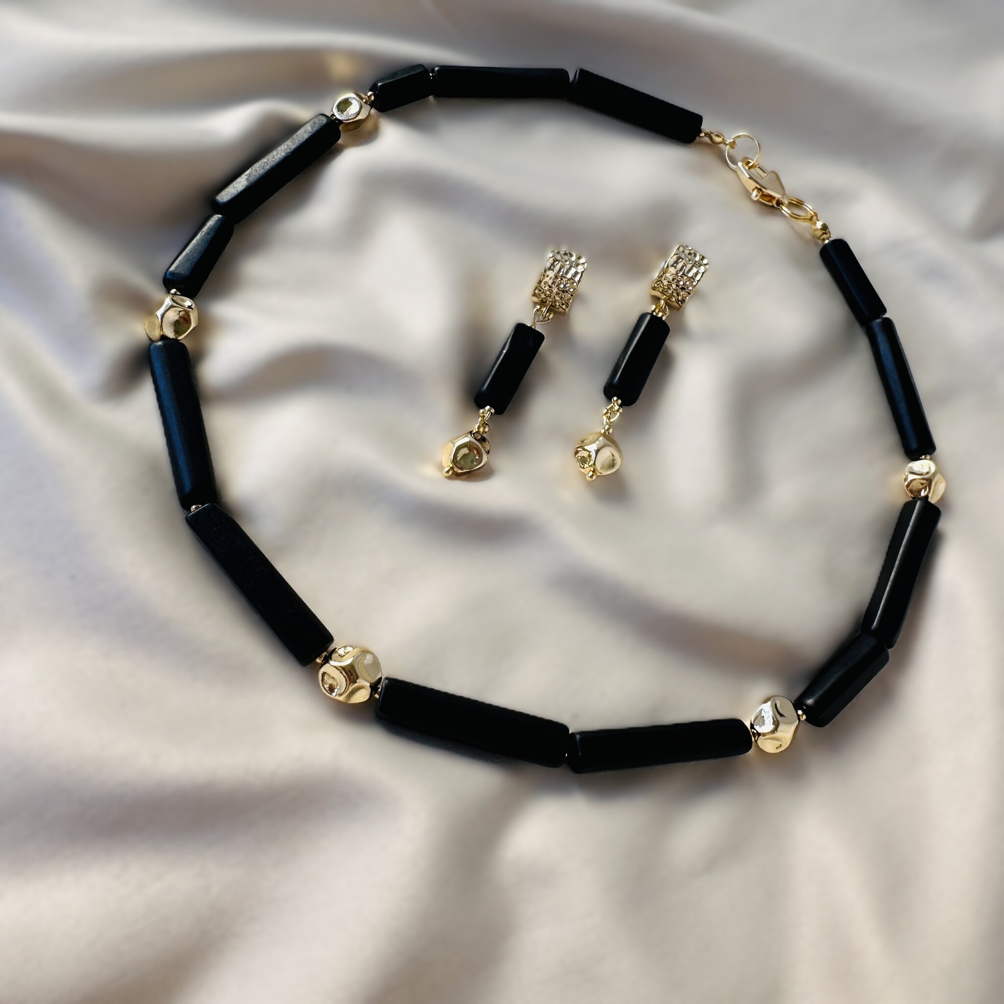 Комплект из чокера и сережек с английским замком. Камень шунгит. Длина чокера 40 см + 4 см цепочка на замочке ля регулирования размера.