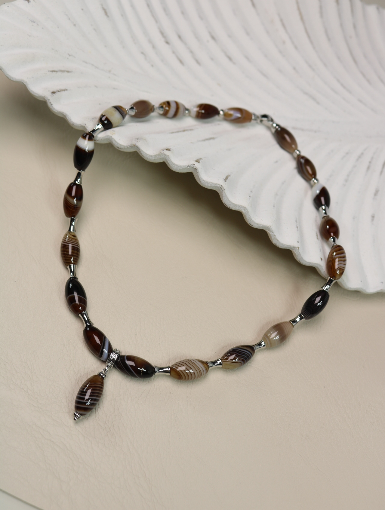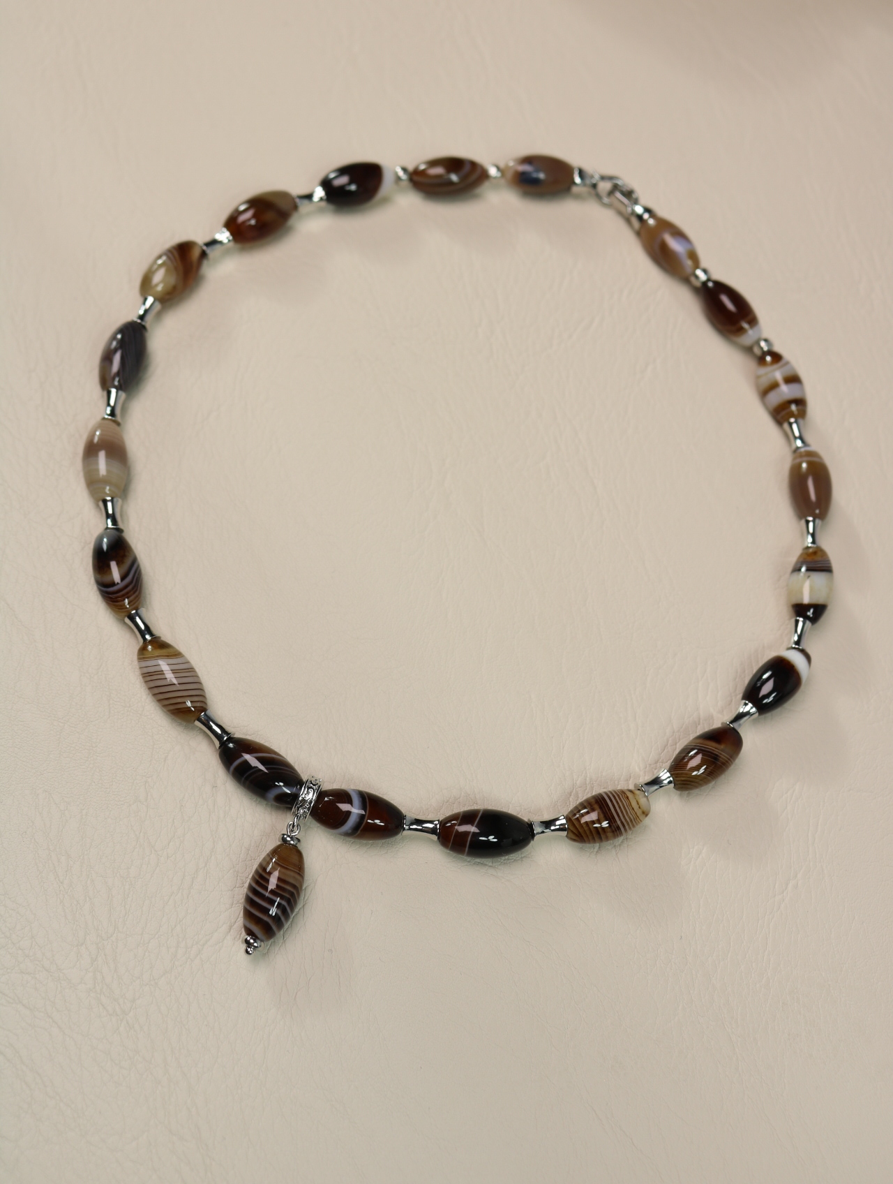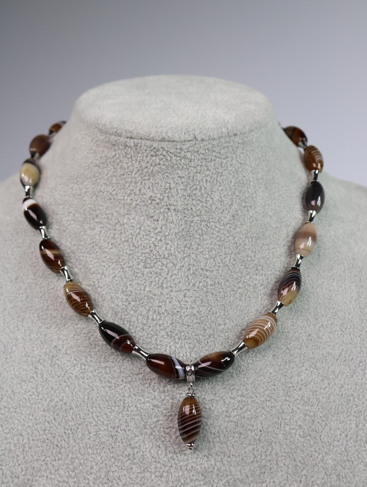 Колье из натурального полосатого агата в тёплой карамельно-шоколадной гамме.