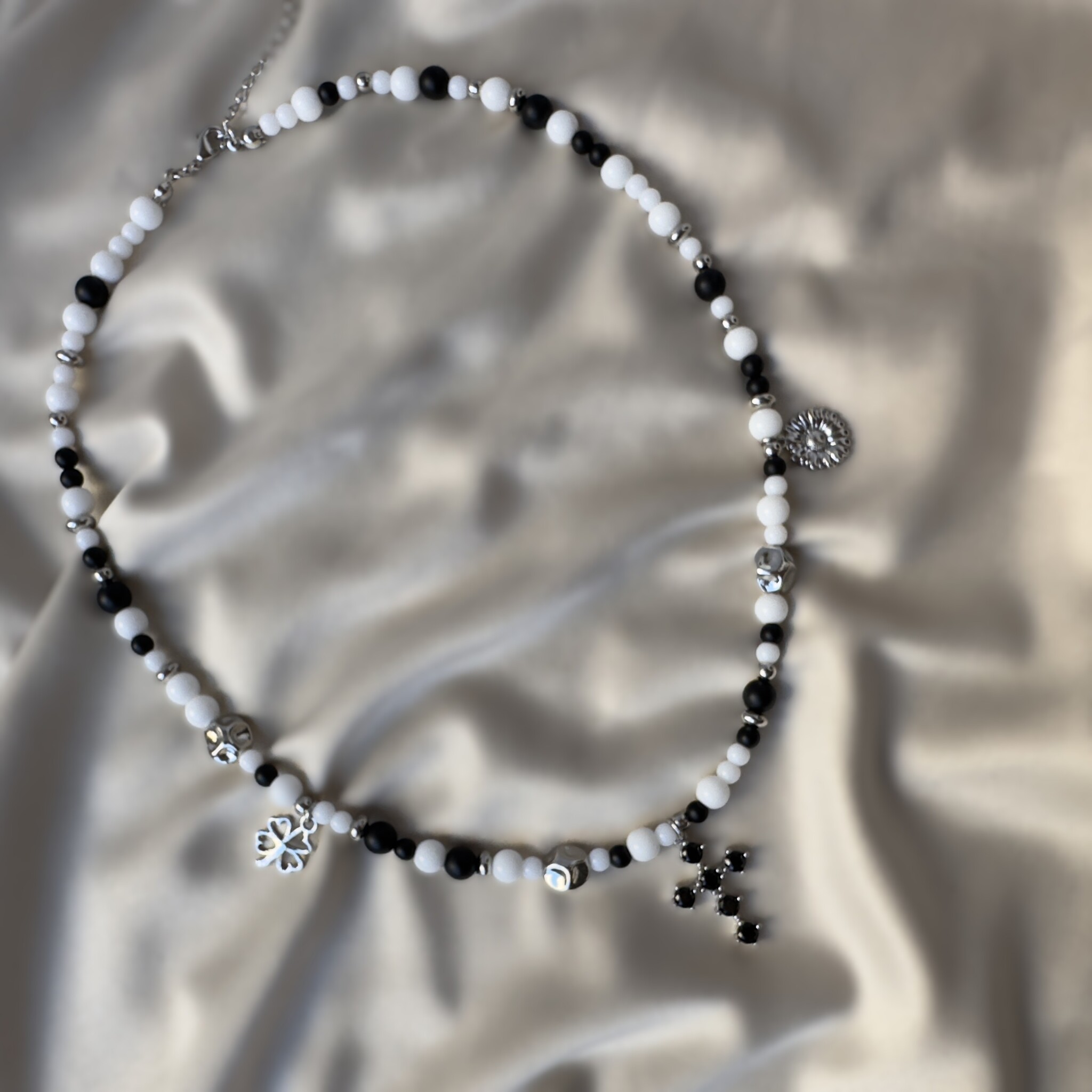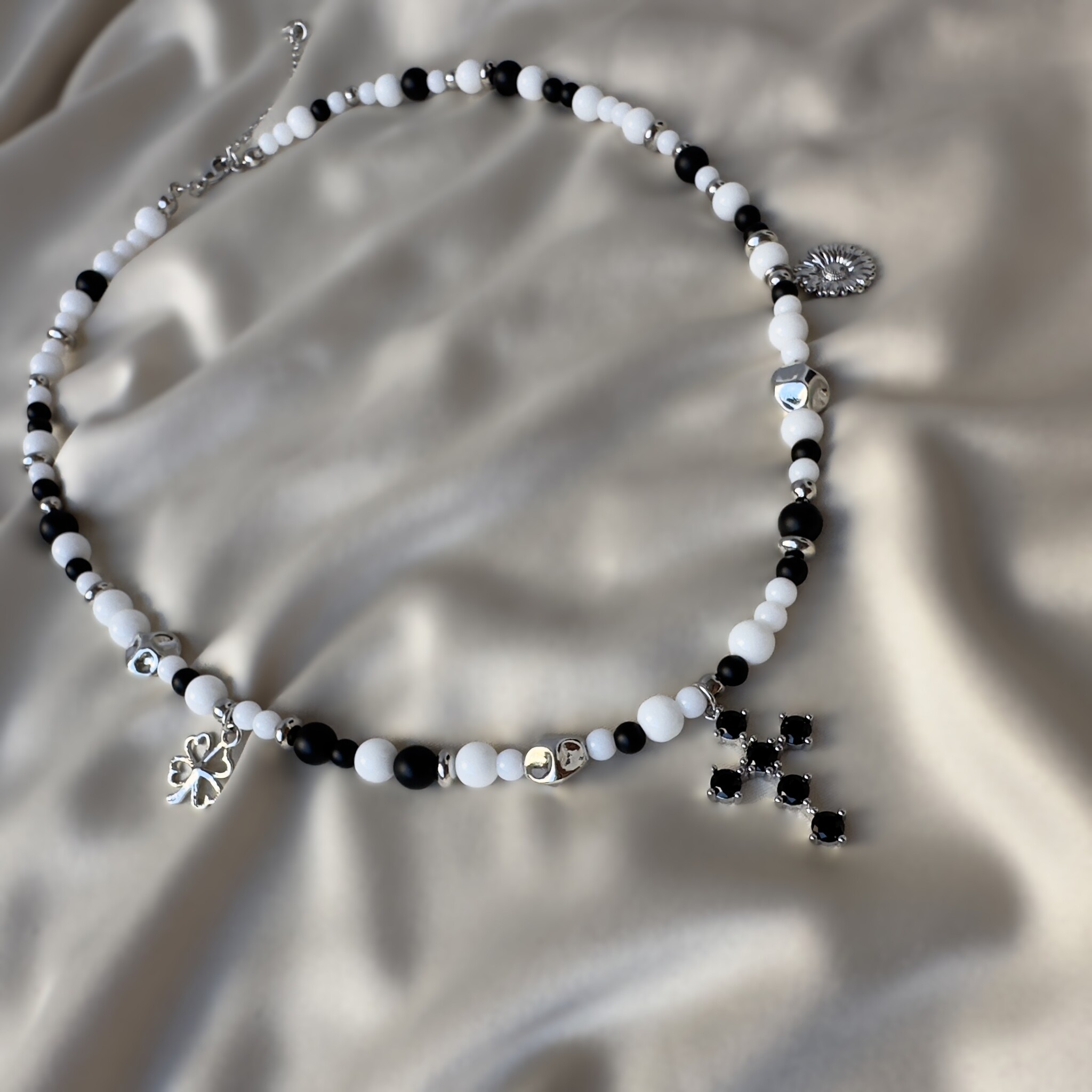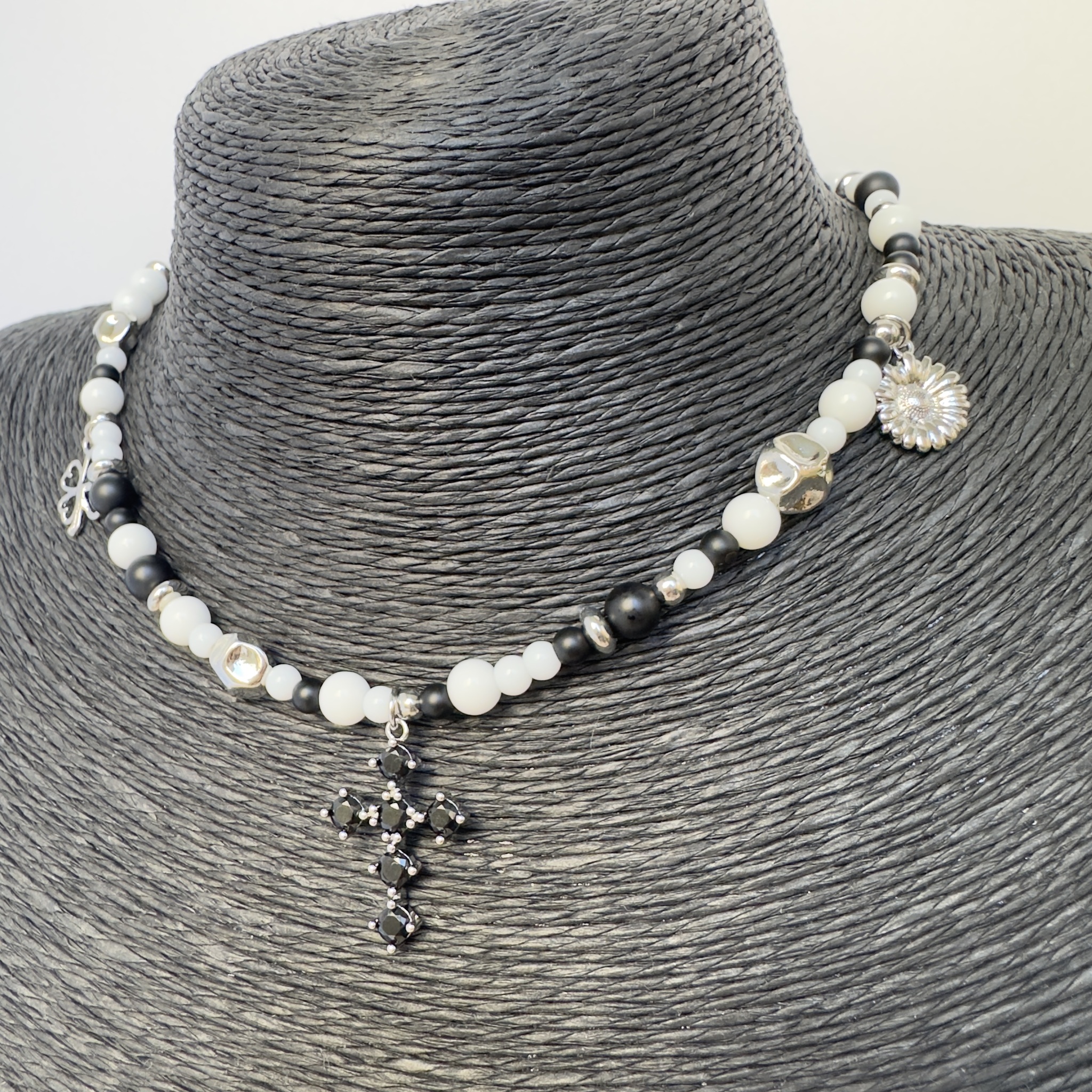 Серебристая фурнитура и подвеска-крест — акцент на индивидуальности, смелости и стиле.
