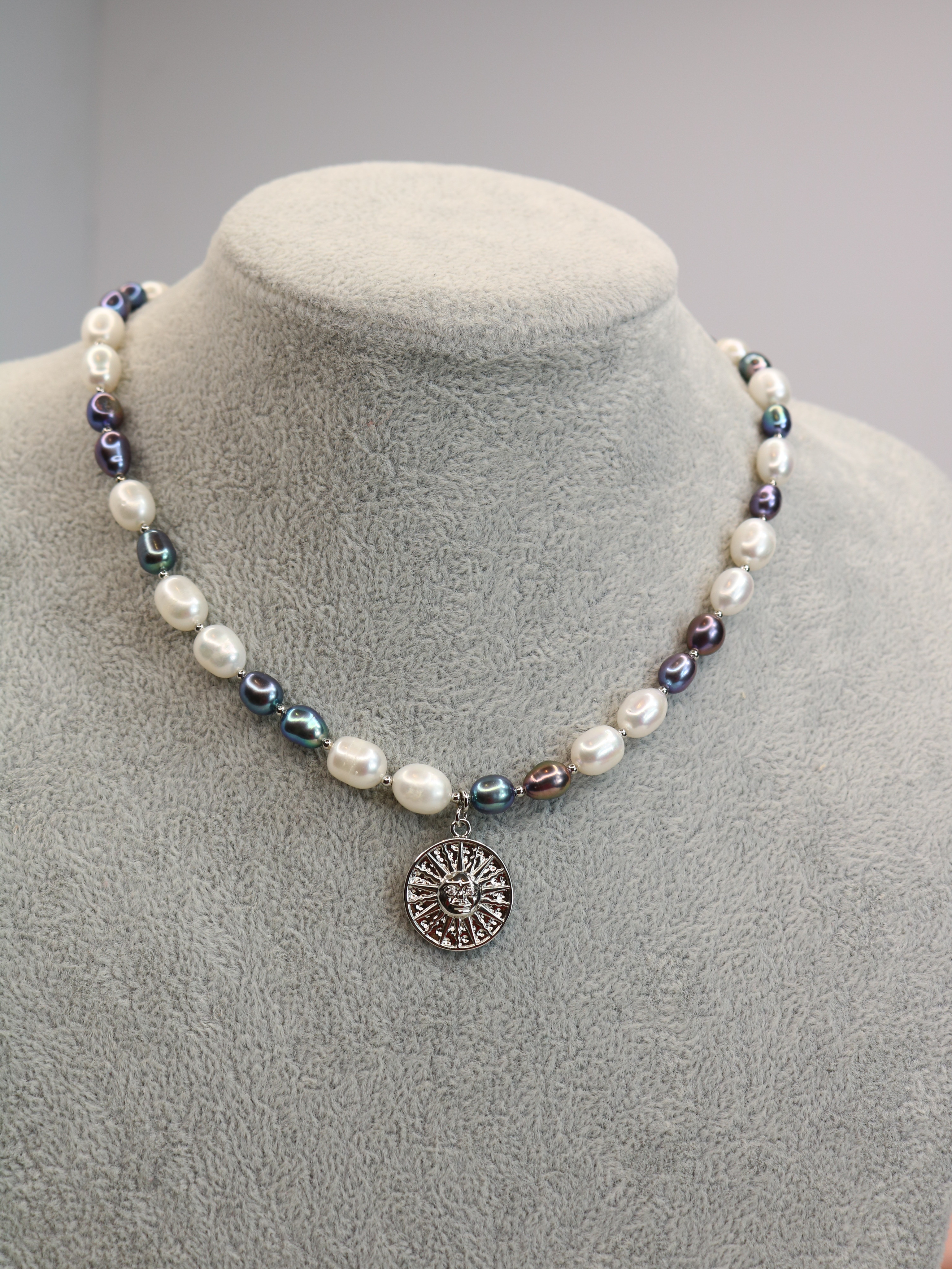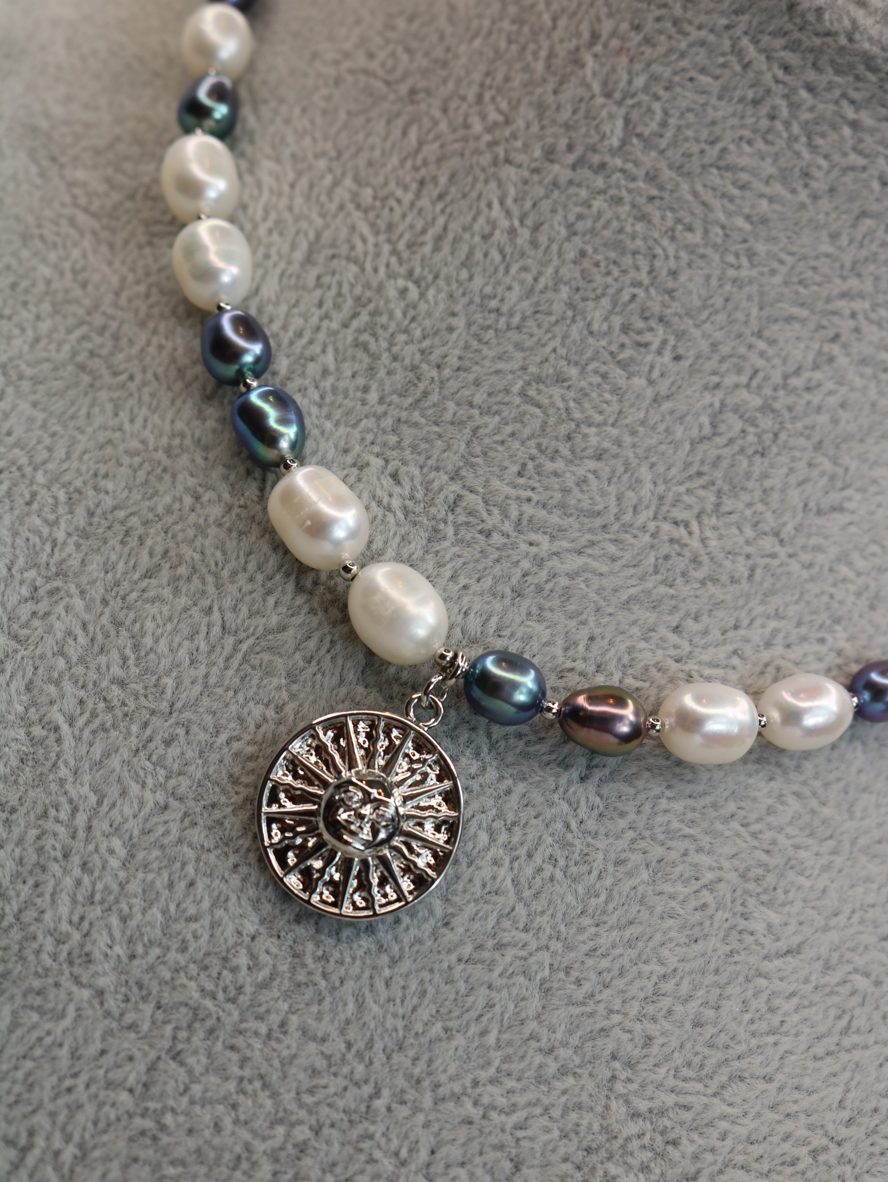 Колье-чокер из натурального речного белого ии черного жемчуга. Длина 40 см + 5 см.
