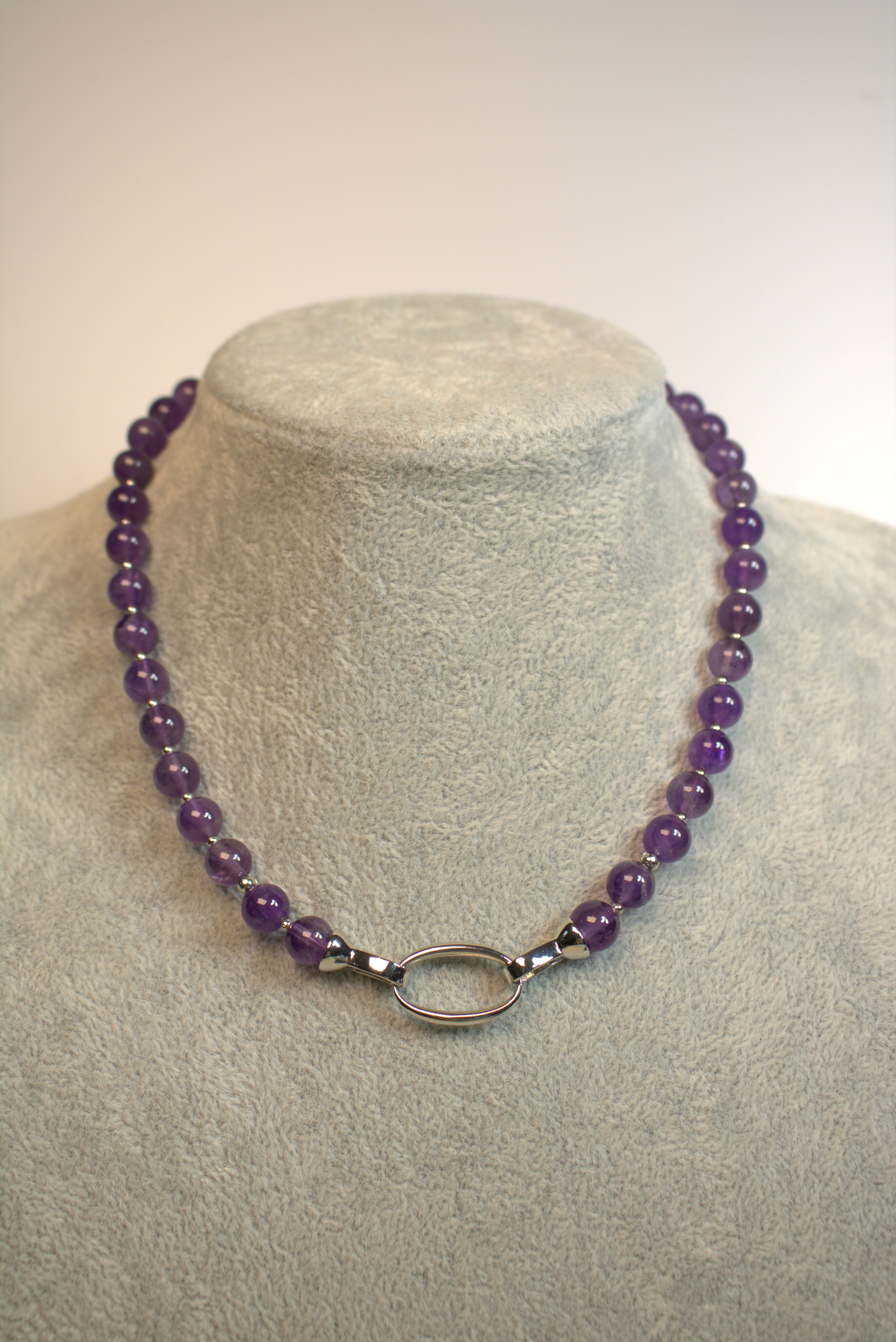 Идеально сочетается с серьгами-гвоздиками или лаконичными аметистовыми/серебристыми серёжками.