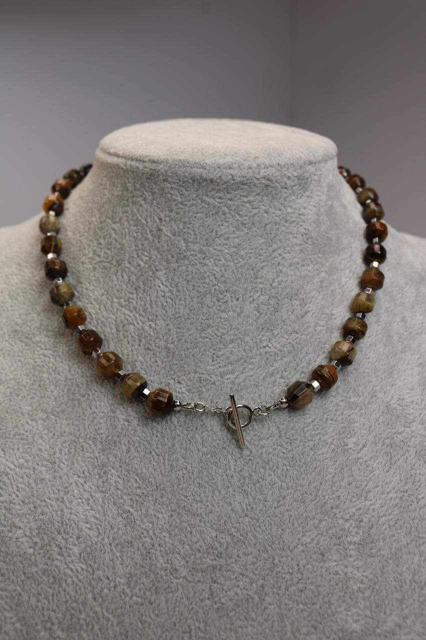 Бусины натурального тигрового глаза с огранкой 8 мм, проставки-гематит, подвеска-сердце из того же камня, застёжка-тогл (удобно и стильно). Глубокий коричнево-мёдовый тон, шёлковистый блик.