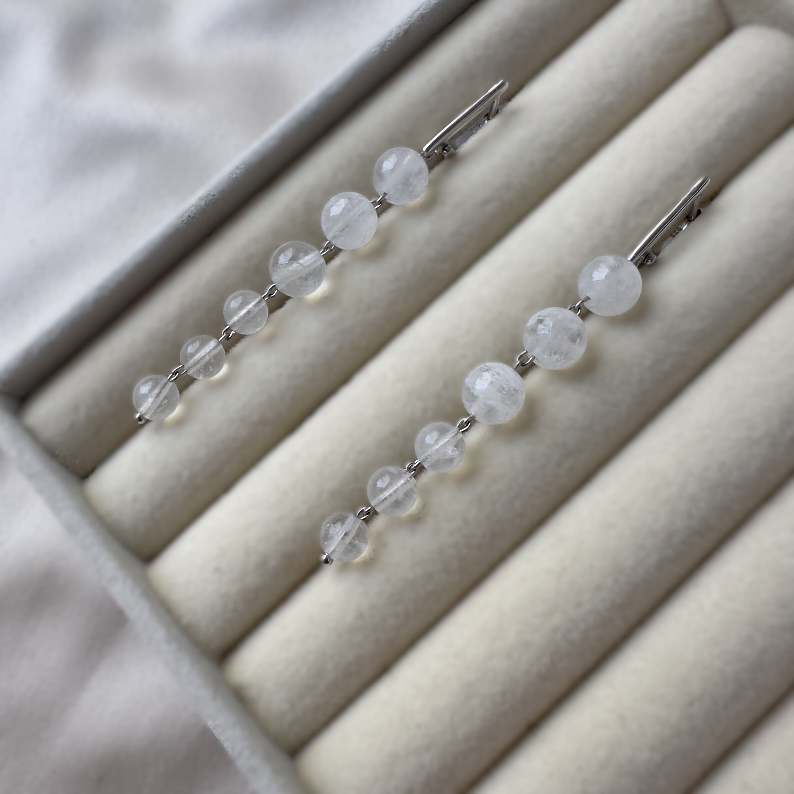 Материалы: натуральный адуляр (шарики 8 и 6 мм), серебристая фурнитура премиум; надёжный английский замок.