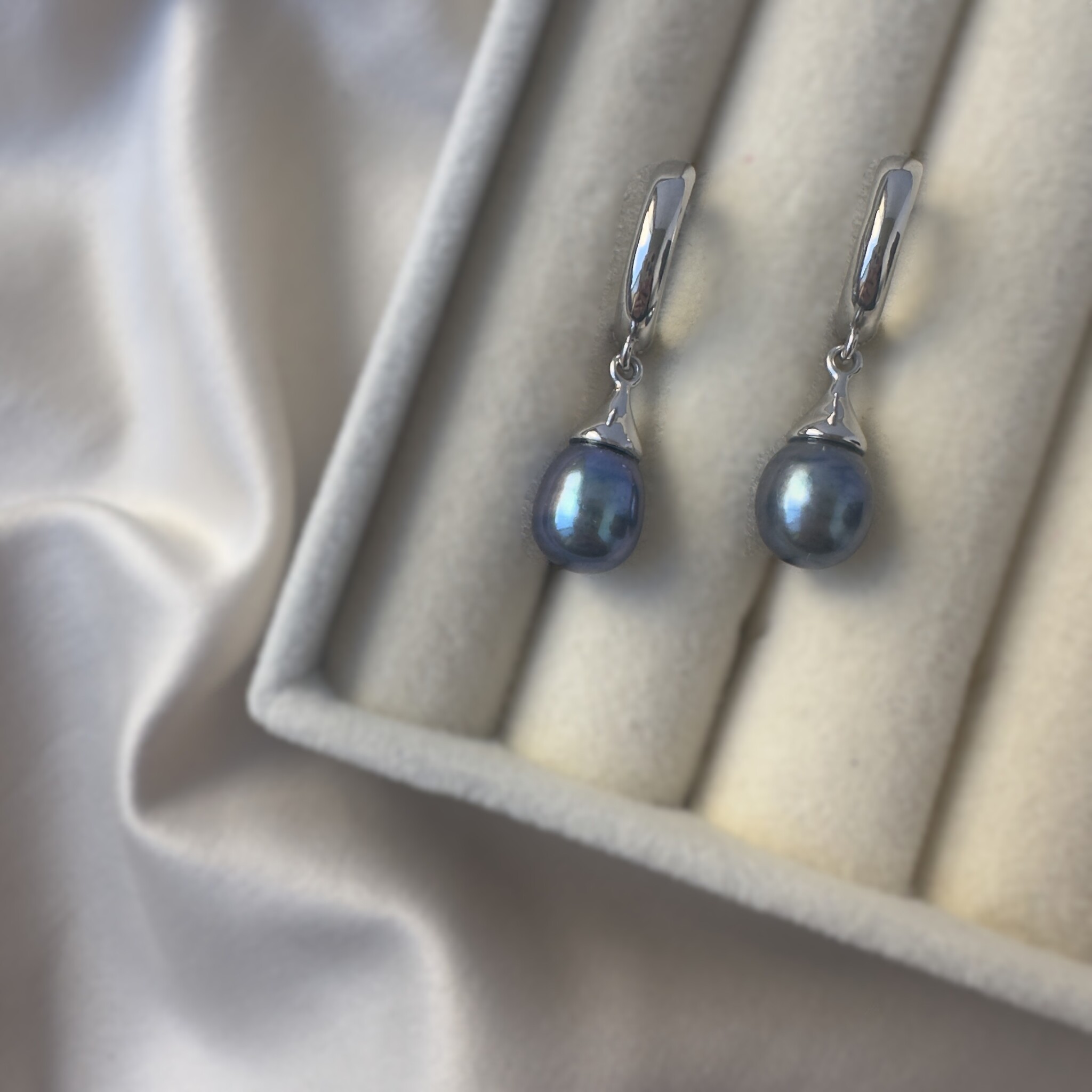В этих серьгах сияет чёрный речной жемчуг с переливами графита и синего. Его глубокий блеск напоминает загадочную силу ночи, когда тьма становится пространством тайн и вдохновения. С давних времён чёрный жемчуг считался символом мудрости и внутренней силы, амулетом для женщин, идущих своим путём.